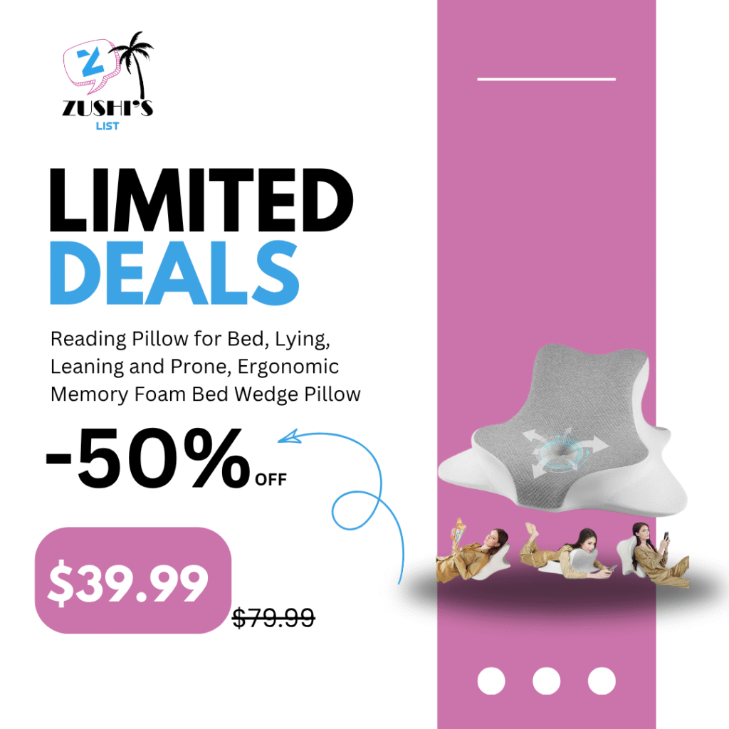 Reading Pillow for Bed, Lying, Leaning and Prone, Ergonomic Memory Foam Bed Wedge Pillow for Headboard, Chin & Back Support Pillows on Bedrest Couch Floor- Grey
