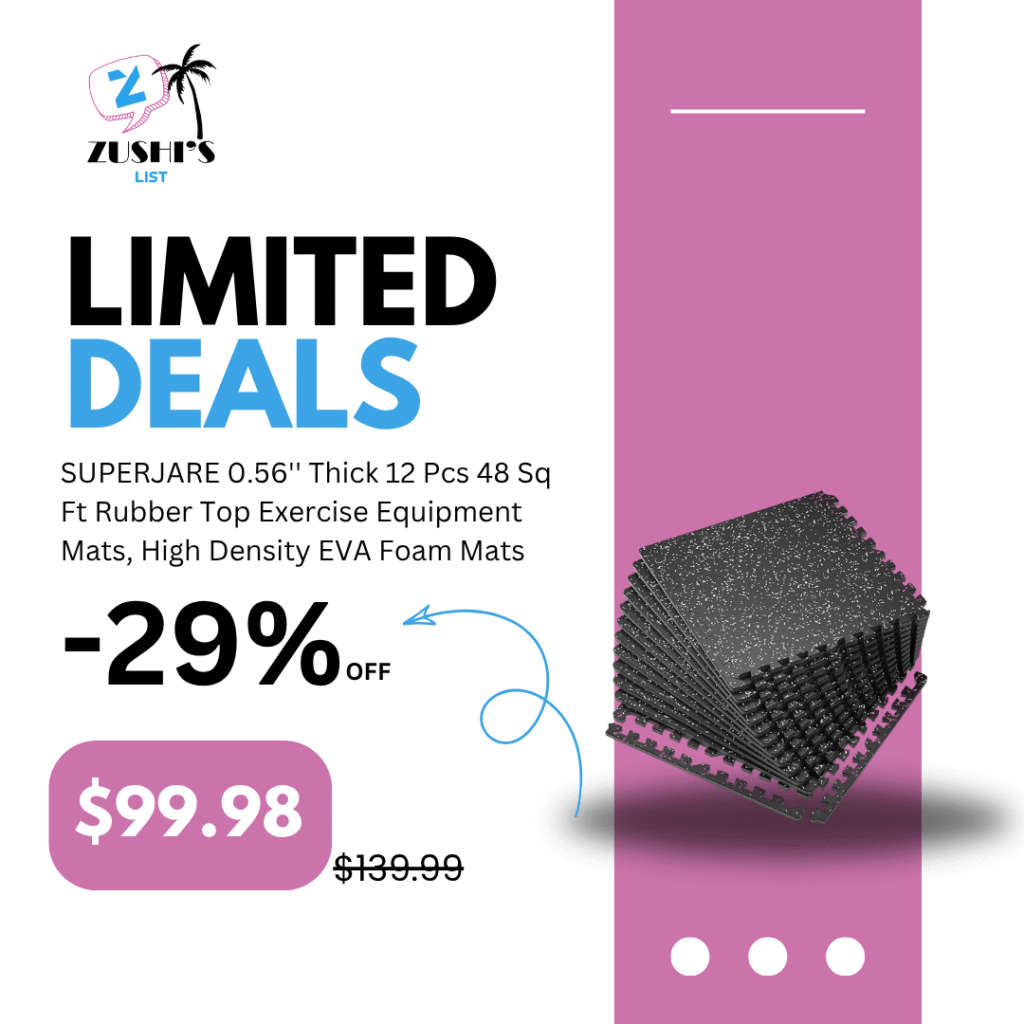 SUPERJARE 0.56” Thick 12 Pcs 48 Sq Ft Rubber Top Exercise Equipment Mats, High Density EVA Foam Mats with Rubber Top, Interlocking Gym Flooring for Home Gym, Protective Workout Mat, Black/Grey