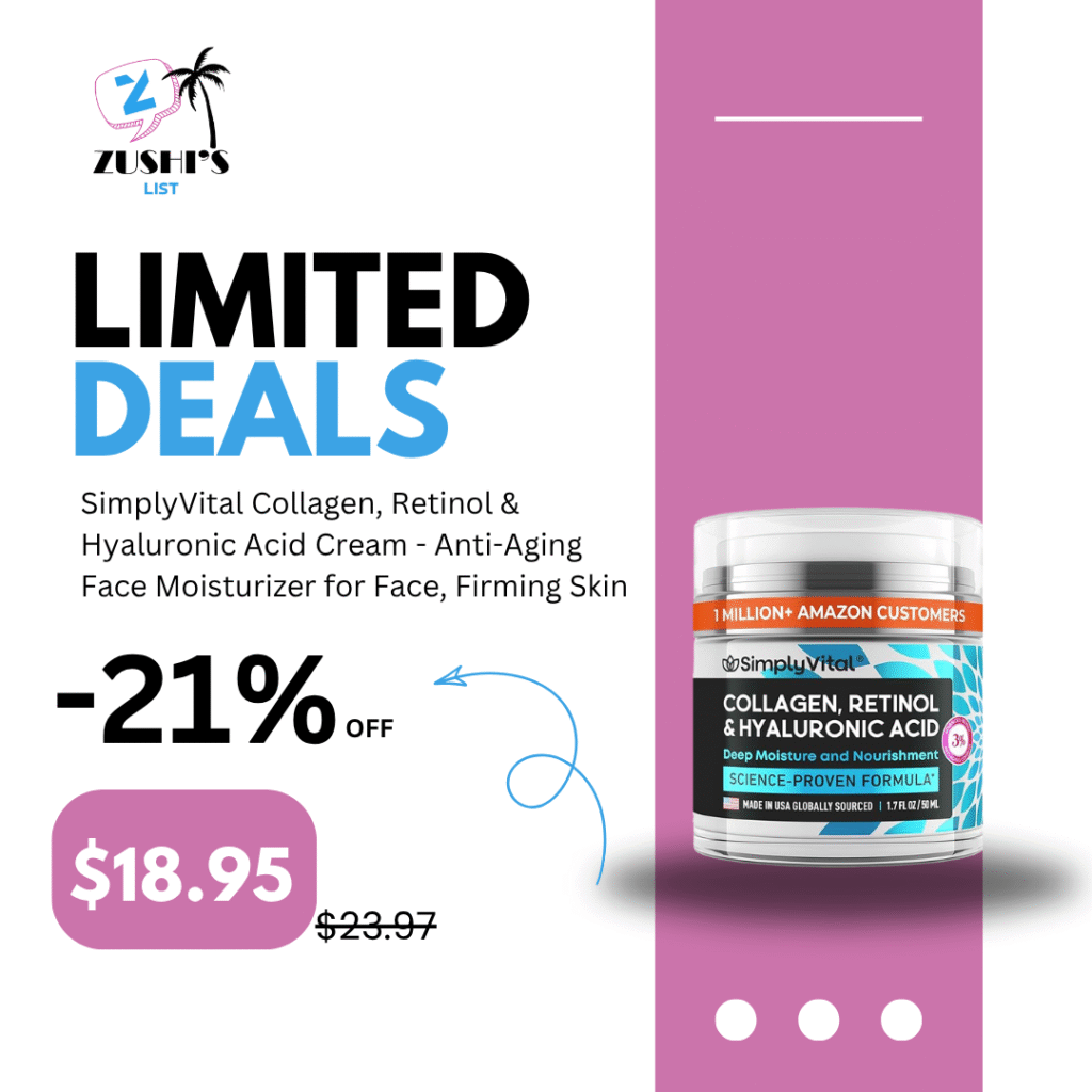 SimplyVital Collagen, Retinol & Hyaluronic Acid Cream – Anti-Aging Face Moisturizer for Face, Firming Skin Care Neck & Décolleté – Made in USA, Daily Moisturizer Face Cream Day & Night – 1.7 fl.oz.