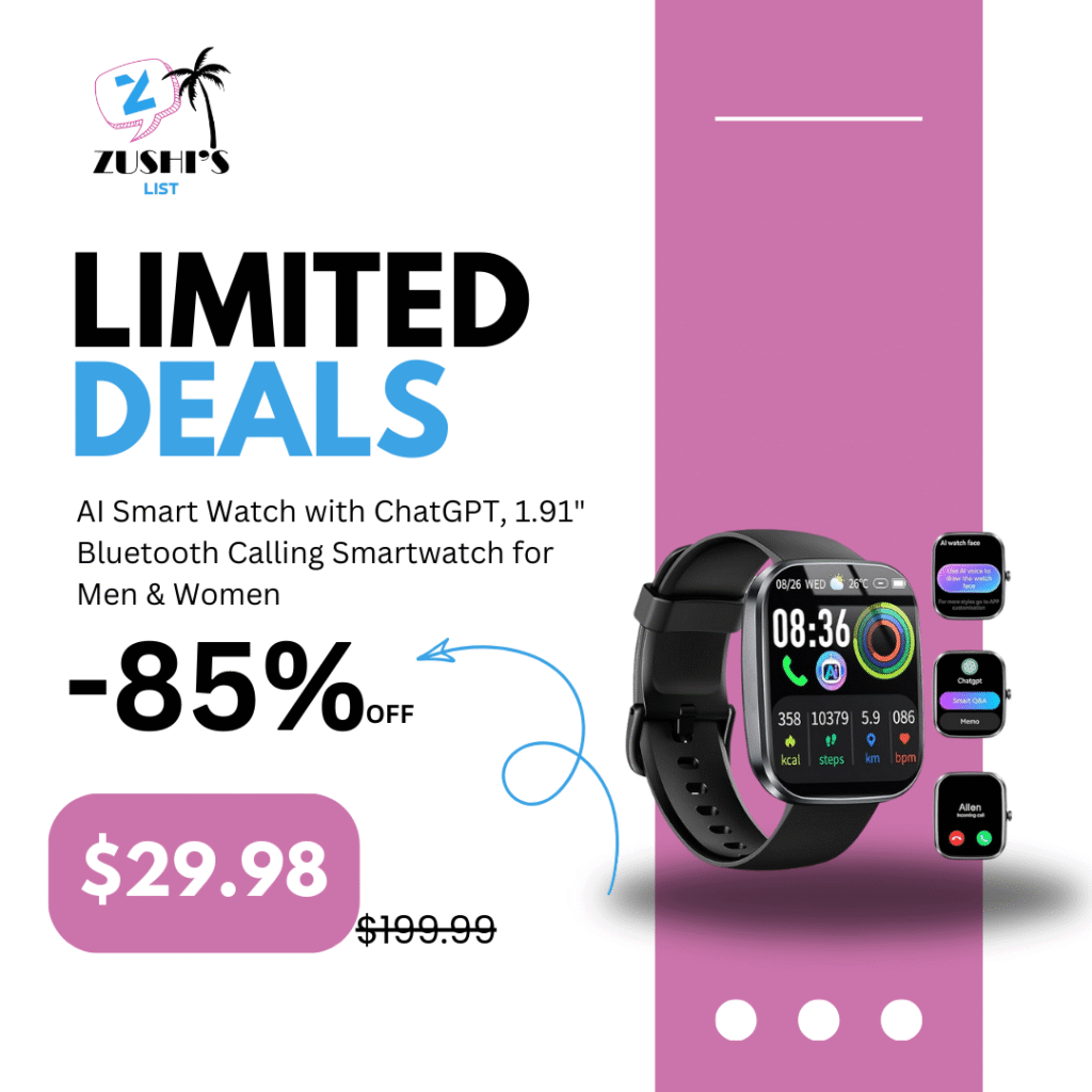 AI Smart Watch with ChatGPT, 1.91″ Bluetooth Calling Smartwatch for Men Women, 110+ Fitness Modes Activity Tracker, Heart Rate/Sleep/Calorie Monitor, IP68 Waterproof Step Counter for Android iOS