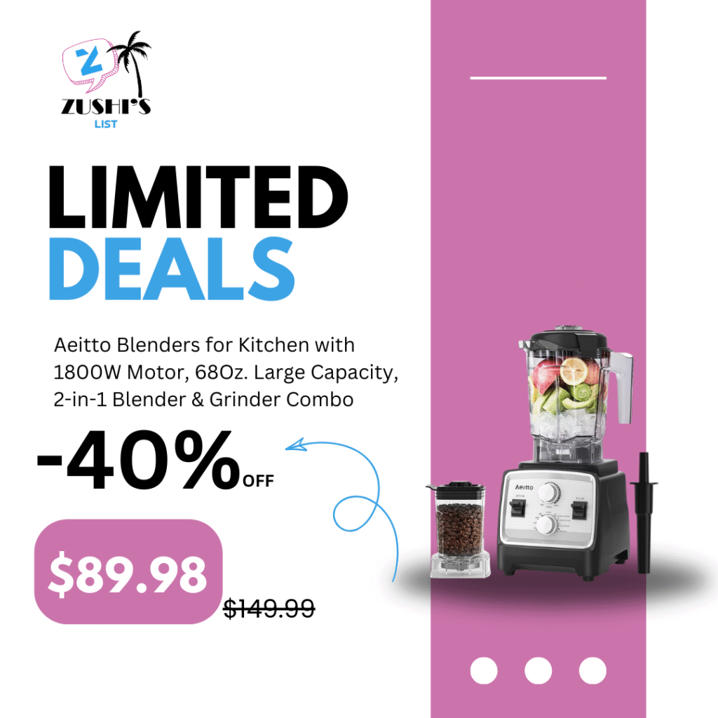 Aeitto Blenders for Kitchen with 1800W Motor, 68Oz. Large Capacity, 2-in-1 Blender & Grinder Combo, BPA-Free Countertop Professional Blender for Smoothies, Ice Crush, Frozen Drinks, Silver