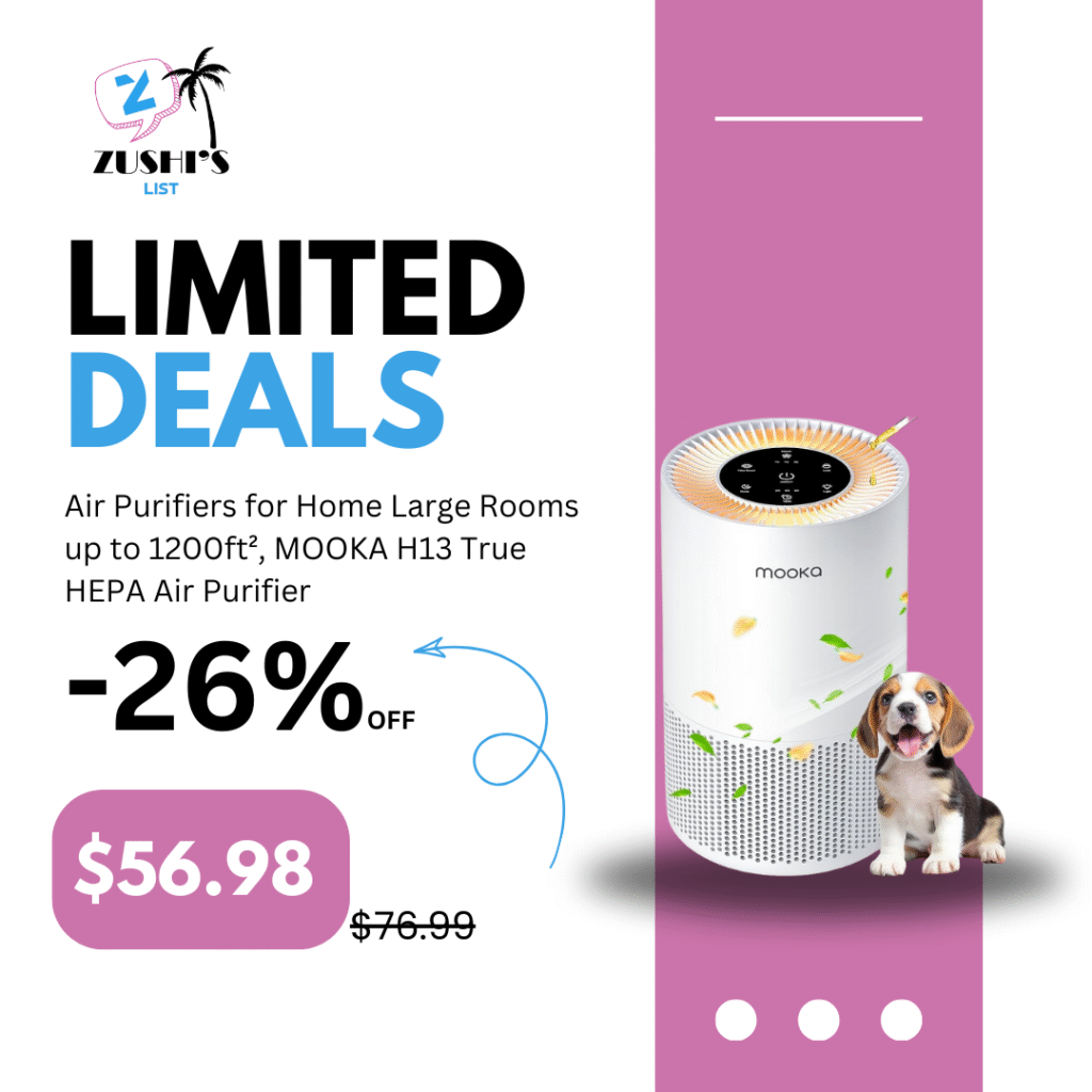 Air Purifiers for Home Large Rooms up to 1200ft², MOOKA H13 True HEPA Air Purifier for Bedroom Pets with Fragrance Sponge, Timer, Air Filter Cleaner for Smoke, Odor, Dander, Pollen (White)