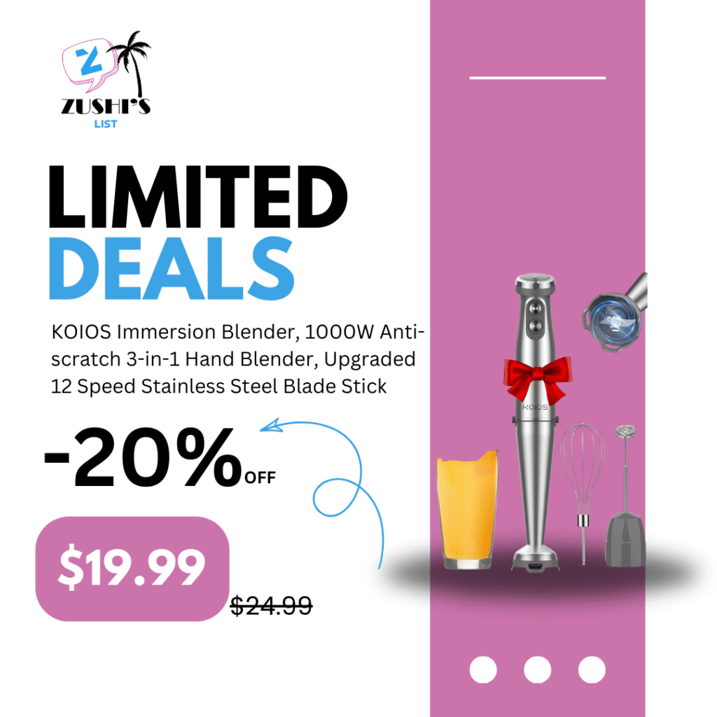 KOIOS Immersion Blender, 1000W Anti-scratch 3-in-1 Hand Blender, Upgraded 12 Speed Stainless Steel Blade Stick Blenders with Turbo Mode, Whisk and Milk Frother, Non-BPA