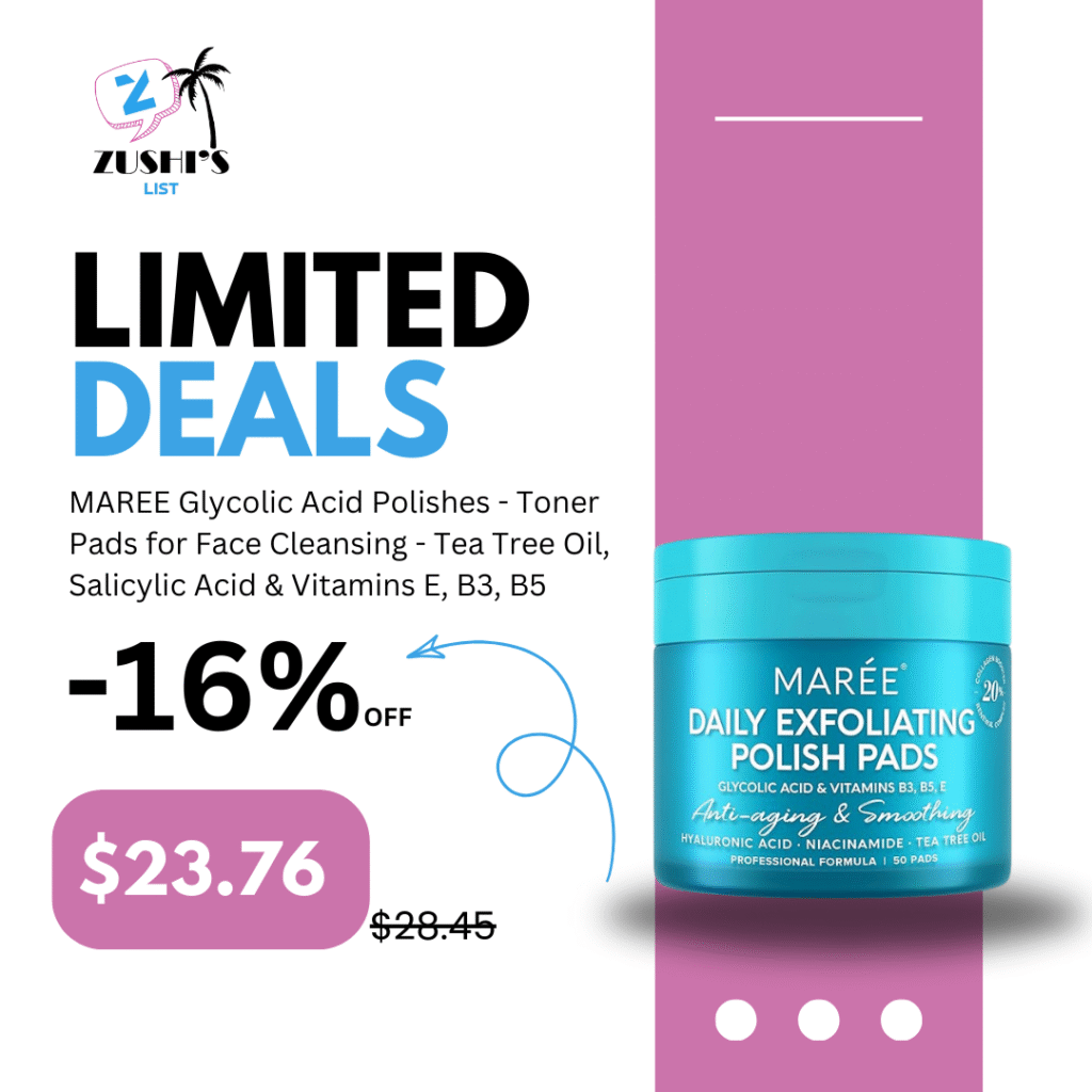 MAREE Glycolic Acid Polishes – Toner Pads for Face Cleansing – Tea Tree Oil, Salicylic Acid & Vitamins E, B3, B5 – Facial Peel & Radiance Deep Cleaning Effect – 50 Count