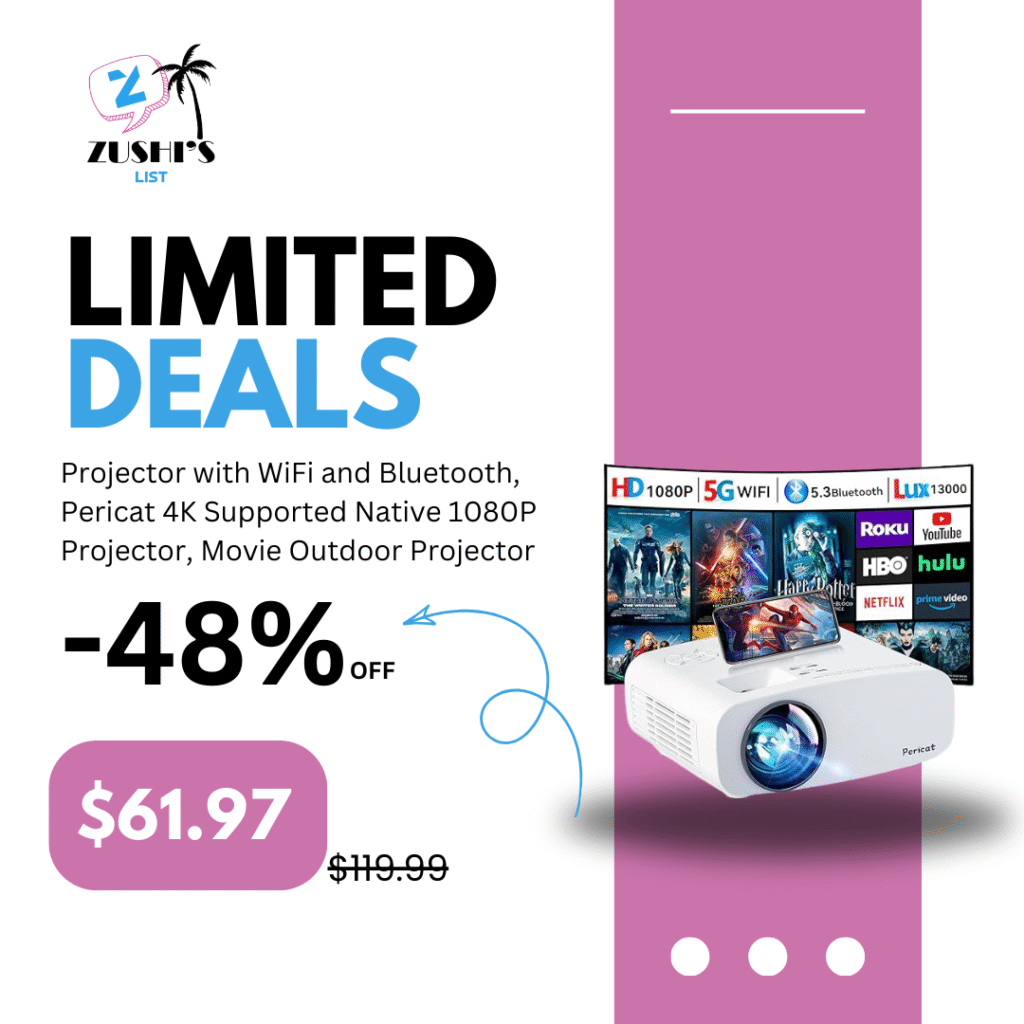 Projector with WiFi and Bluetooth, Pericat 4K Supported Native 1080P Projector, Portable Movie Outdoor Projector for Home Theater, Mini Projector Compatible with PC, HDMI, USB, TV Stick, PS5