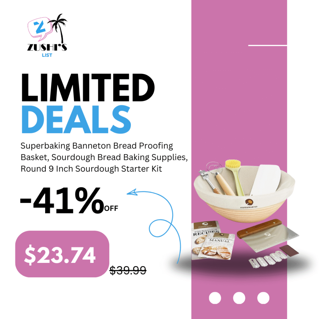 Superbaking Banneton Bread Proofing Basket, Sourdough Bread Baking Supplies, Round 9 Inch Sourdough Starter Kit, Proofing Basket for Baking, Bread Making Supplies Tools, Banneton Basket Gift Set