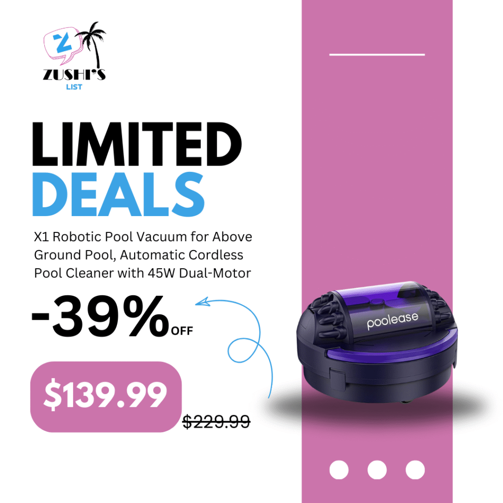 X1 Robotic Pool Vacuum for Above Ground Pool, Automatic Cordless Pool Cleaner with 45W Dual-Motor, Ideal for Above-Ground Flat Pool, 2L Debris Capacity