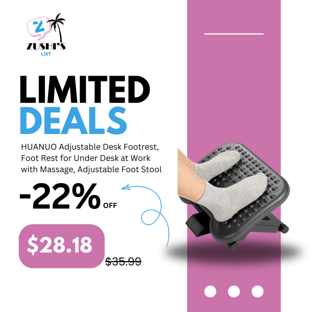HUANUO Adjustable Desk Footrest, Foot Rest for Under Desk at Work with Massage, Adjustable Foot Stool with 3 Height Position & 30 Degree Tilt Angle Adjustment for Home, Office
