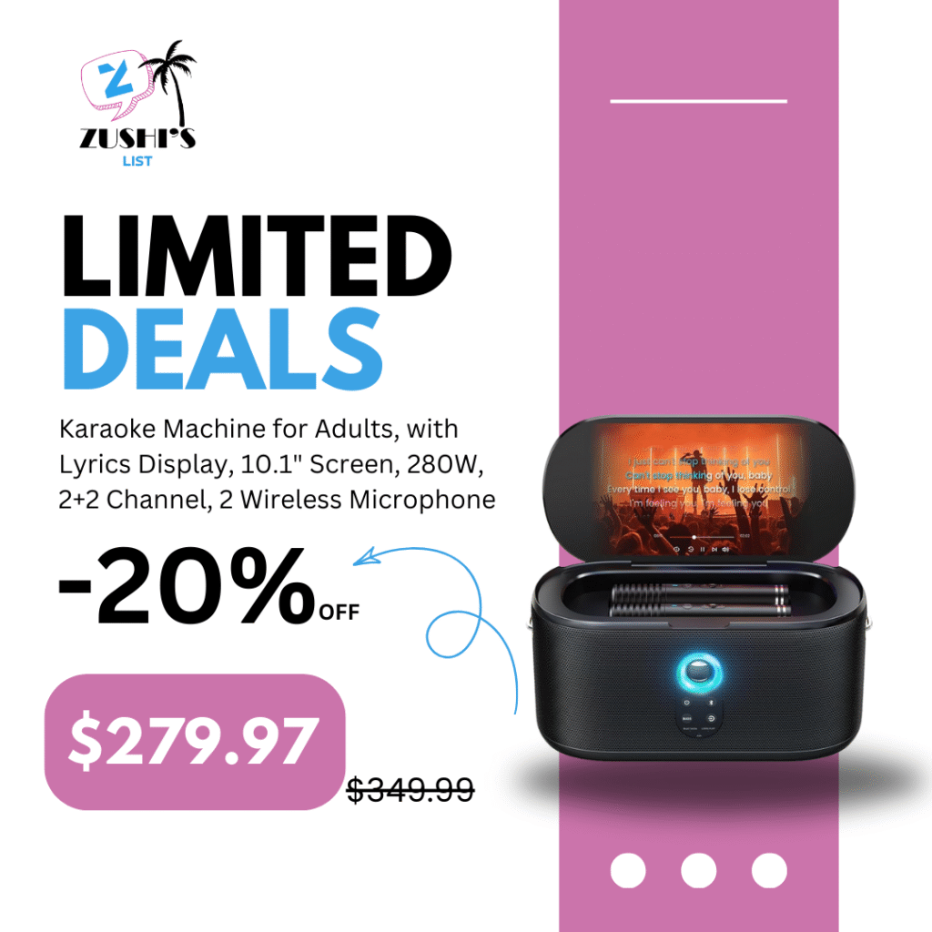 Karaoke Machine for Adults, with Lyrics Display, 10.1″ Screen, 280W, 2+2 Channel, 2 Wireless Microphone, Autotune EQ, Self-Charging, Portable Home Karaoke System with KaraFun Prime, HDMI for TV