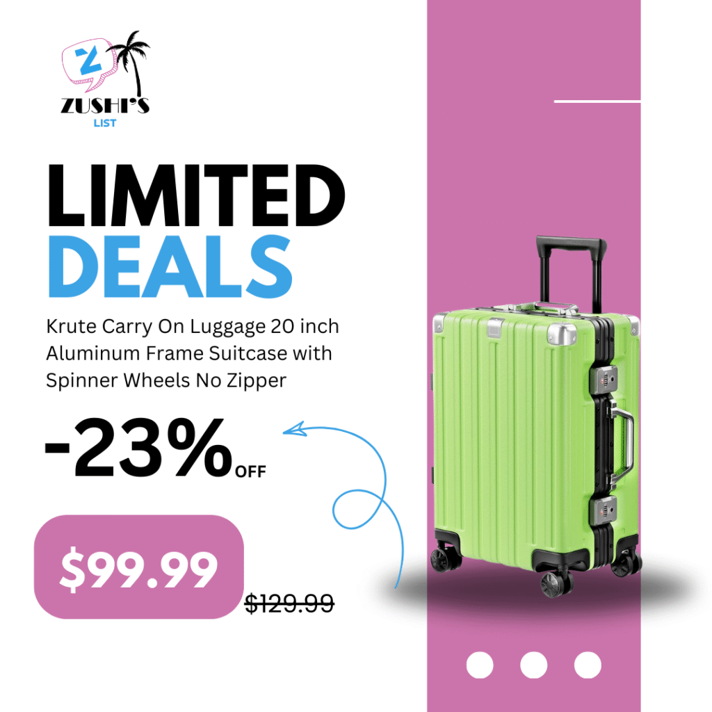 Krute Carry On Luggage 20 inch Aluminum Frame Suitcase with Spinner Wheels No Zipper Hardshell PC+ABS Luggages TSA Lock Zipperless Suitcases