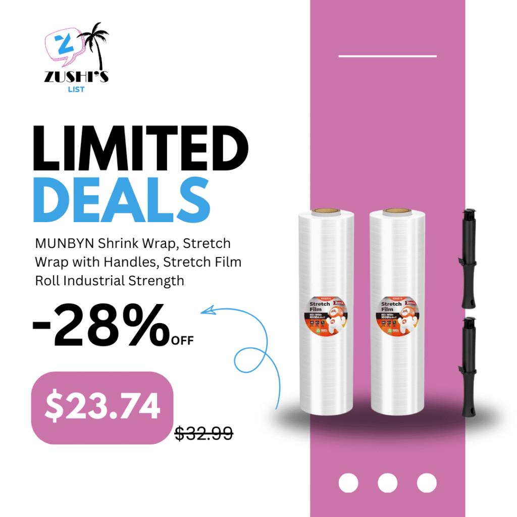 MUNBYN Shrink Wrap, Stretch Wrap with Handles, Stretch Film Roll Industrial Strength, Plastic Wrap for Pallet Wrapping Shipping Moving, 15 Inch x 1000 Ft, 2 Pack, 60 Gauge