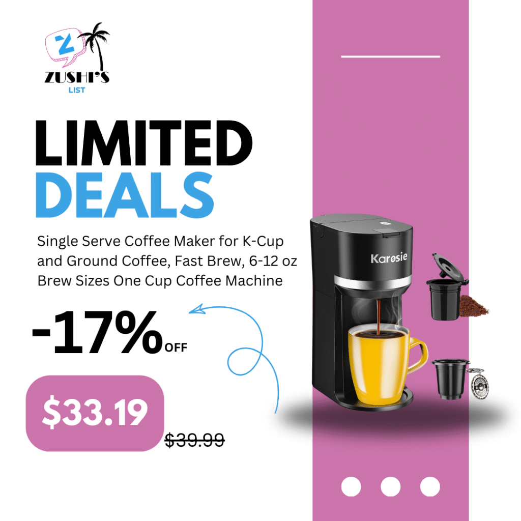 Single Serve Coffee Maker for K-Cup and Ground Coffee, Fast Brew, 6-12 oz Brew Sizes One Cup Coffee Machine Fits 5.5″ Mugs, One-Button Small Coffee Maker with Descaling Reminder,Black