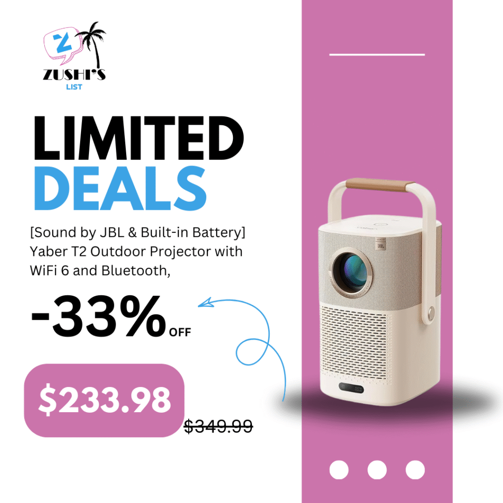 [Sound by JBL & Built-in Battery] Yaber T2 Outdoor Projector with WiFi 6 and Bluetooth, Native 1080P Smart Movie Portable Projector for Inside and Outside, Compatible with TV Dongle (Not included)