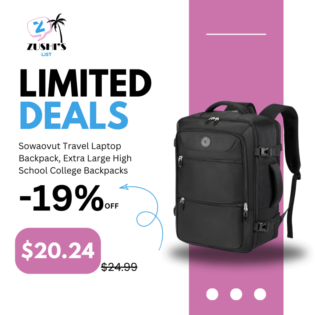Sowaovut Travel Laptop Backpack, Extra Large High School College Backpacks, Flight Approved Daypack Business Bag Fit 17.3 inch Laptop for Men Women (Black)