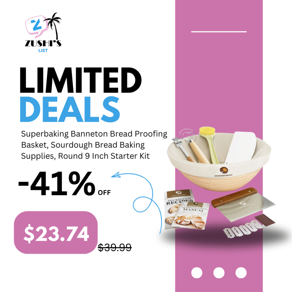 Superbaking Banneton Bread Proofing Basket, Sourdough Bread Baking Supplies, Round 9 Inch Sourdough Starter Kit, Proofing Basket for Baking, Bread Making Supplies Tools, Banneton Basket Gift Set