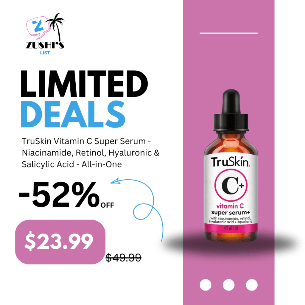 TruSkin Vitamin C Super Serum – Niacinamide, Retinol, Hyaluronic & Salicylic Acid – All-in-One Anti Aging Serum for Face – Improve Appearance of Dark Spots, Firmness for Brighter Looking Skin, 2 Fl Oz