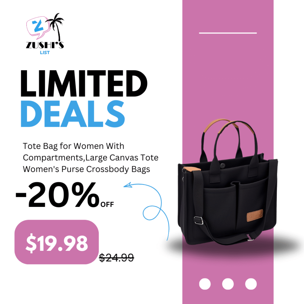 Tote Bag for Women With Compartments,Large Canvas Tote Women’s Purse Crossbody Bags Work Laptop Book Bag Satchels Handbags