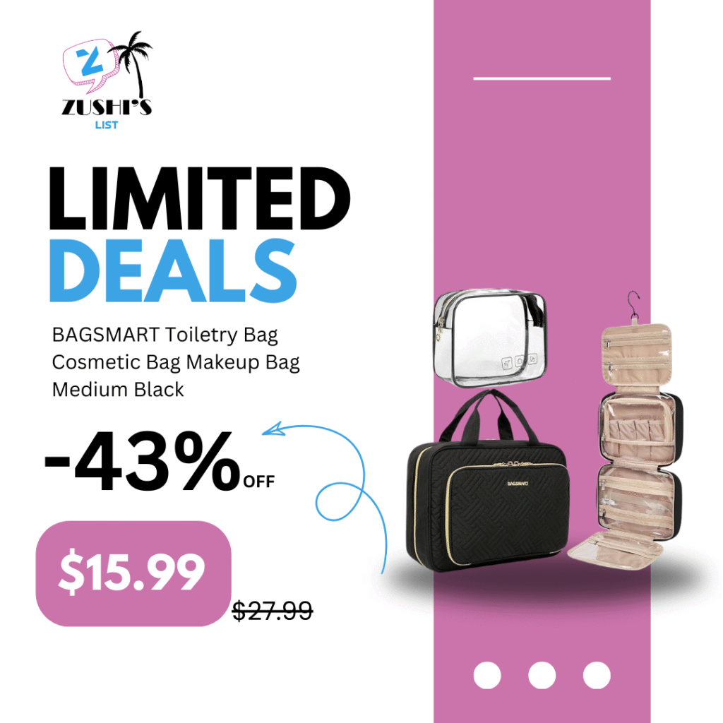 BAGSMART Toiletry Bag Cosmetic Bag Makeup Bag Medium Black