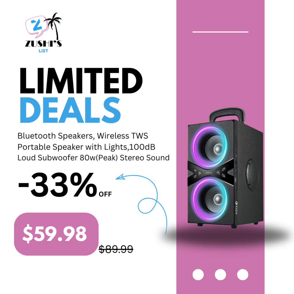Bluetooth Speakers, Wireless TWS Portable Speaker with Lights,100dB Loud Subwoofer 80w(Peak) Stereo Sound, Bassup Technology, Long Playtime for Outdoor Party
