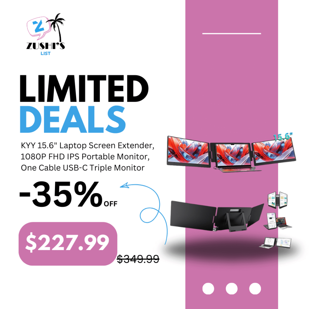KYY 15.6″ Laptop Screen Extender, 1080P FHD IPS Portable Monitor, One Cable USB-C Triple Monitor, Dual Travel Screen for 12″-17” Laptops, 360° Rotation & Kickstand,X90D (Driver Need)