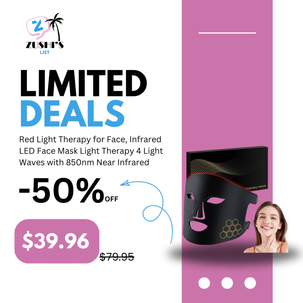 Red Light Therapy for Face, Infrared LED Face Mask Light Therapy 4 Light Waves with 850nm Near Infrared, Portable Rechargeable Red Light Therapy Mask Skincare Device for Facial Rejuvenation
