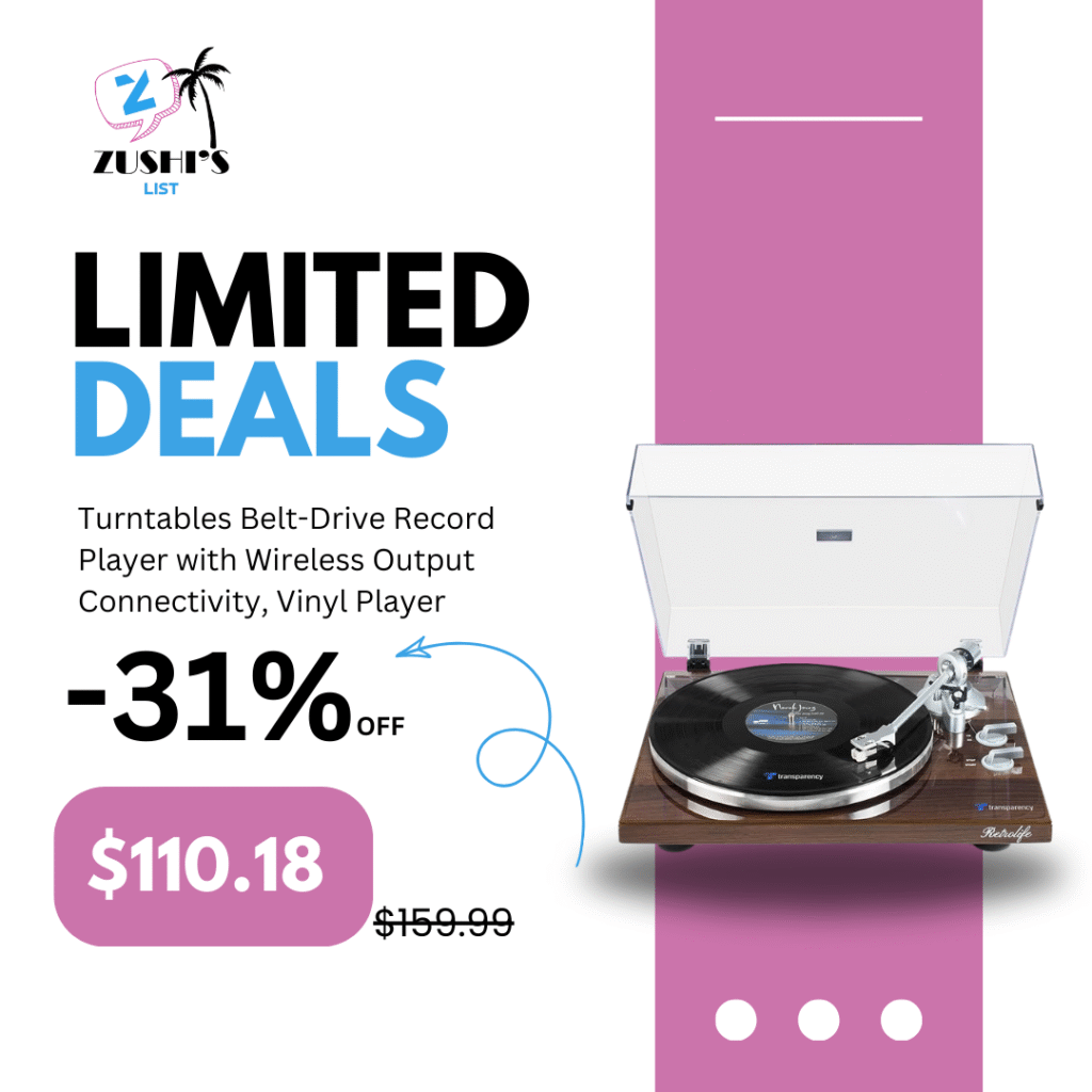 Turntables Belt-Drive Record Player with Wireless Output Connectivity, Vinyl Player Support 33&45 RPM Speed Phono Line USB Digital to PC Recording with Advanced Magnetic Cartridge&Counterweight