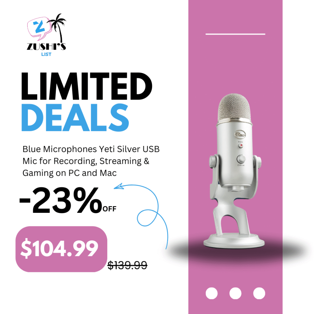 Blue Microphones Yeti Silver USB Mic for Recording, Streaming & Gaming on PC and Mac with Blue Voce Effects 4 Pickup Patterns, Headphone Output, Volume Control, Mic Gain Control, & Adjustable Stand