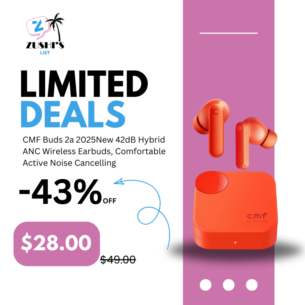 CMF Buds 2a 2025New 42dB Hybrid ANC Wireless Earbuds, Comfortable Active Noise Cancelling, Dirac Tuned Rich Mids & Crisp Bass, Bluetooth 5.4, ENC 4Mic Clear Call, Up to 35H of Battery Life, Orange