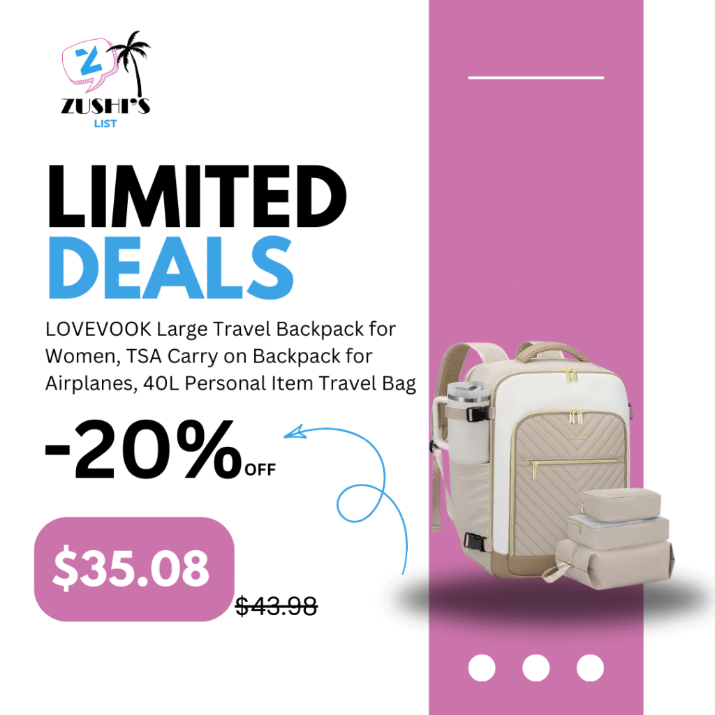 LOVEVOOK Large Travel Backpack for Women, TSA Carry on Backpack for Airplanes, 40L Personal Item Travel Bag for Women fits 17″ Laptop,Waterproof Carry on Bag Airplane Approved with 3 Packing Cubes