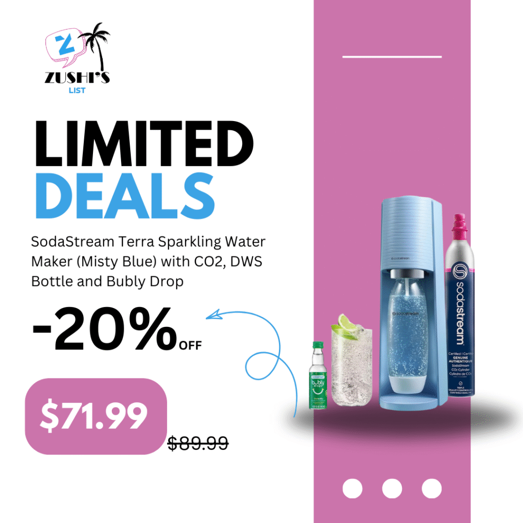 SodaStream Terra Sparkling Water Maker (Misty Blue) with CO2, DWS Bottle and Bubly Drop