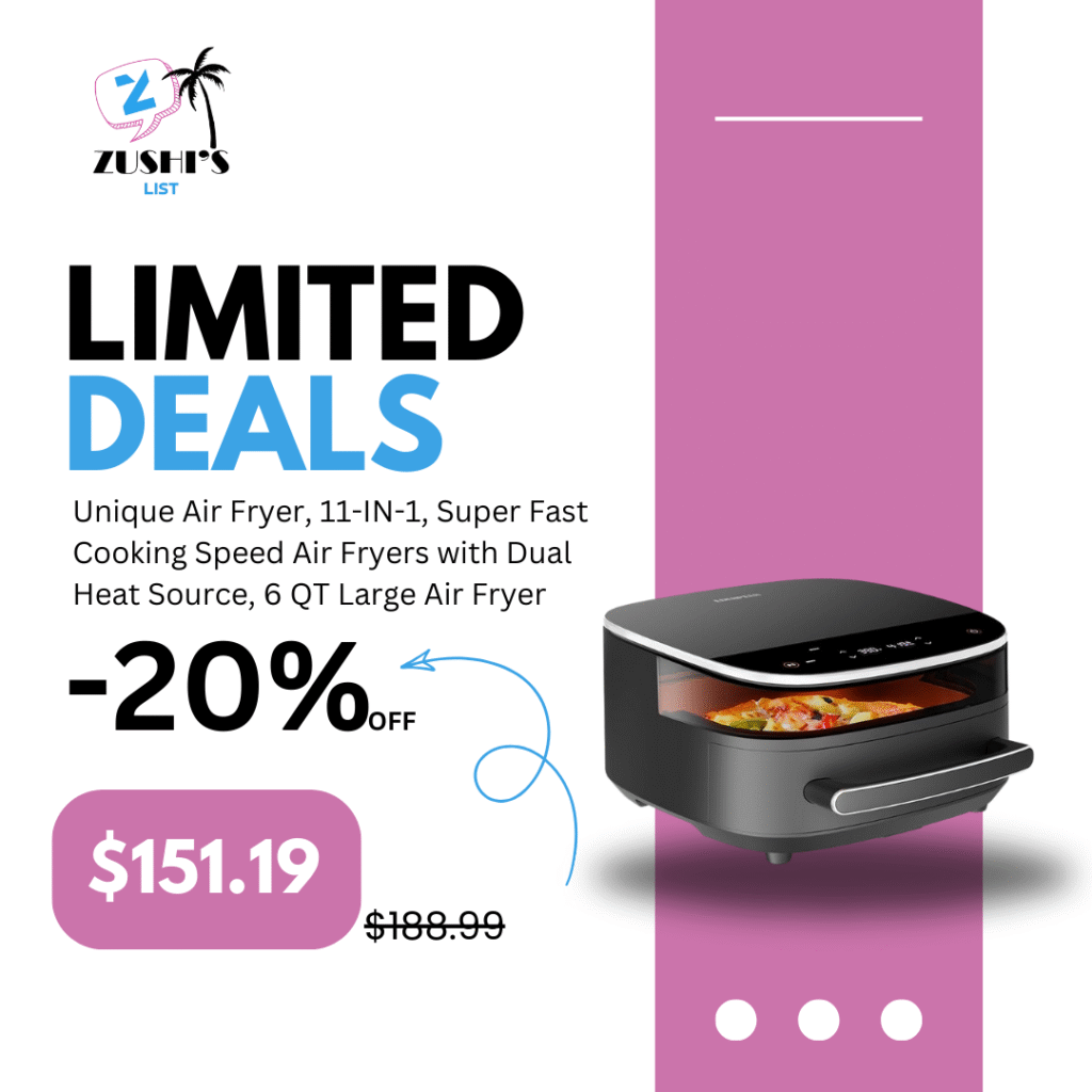 Unique Air Fryer, 11-IN-1, Super Fast Cooking Speed Air Fryers with Dual Heat Source, 6 QT Large Air Fryer, Non Toxic Air Fryers Stainless Steel, Bigger Cook Area, Perfect for Making 12 Inch Pizza