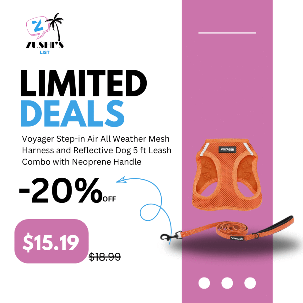 Voyager Step-in Air All Weather Mesh Harness and Reflective Dog 5 ft Leash Combo with Neoprene Handle, for Small, Medium and Large Breed Puppies by Best Pet Supplies – Set (Orange), S