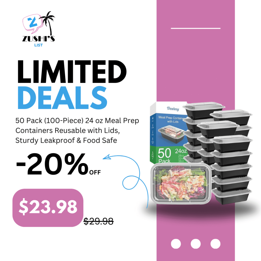 50 Pack (100-Piece) 24 oz Meal Prep Containers Reusable with Lids, Sturdy Leakproof & Food Safe, Microwave, Freezer, Dishwasher Safe Prep Containers, To Go Take Out Plastic Food Storage