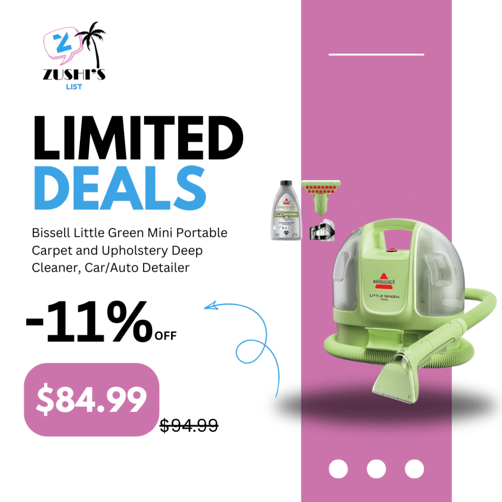 Bissell Little Green Mini Portable Carpet and Upholstery Deep Cleaner, Car/Auto Detailer, with HydroRinse Self-Cleaning Tool and 4″ Tough Stain Tool, Tea Green, 4075