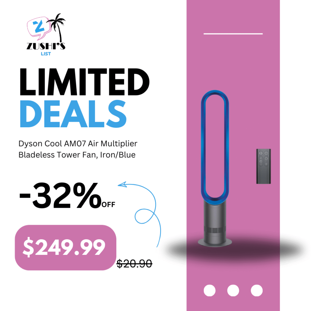Dyson Cool AM07 Air Multiplier Bladeless Tower Fan, Iron/Blue