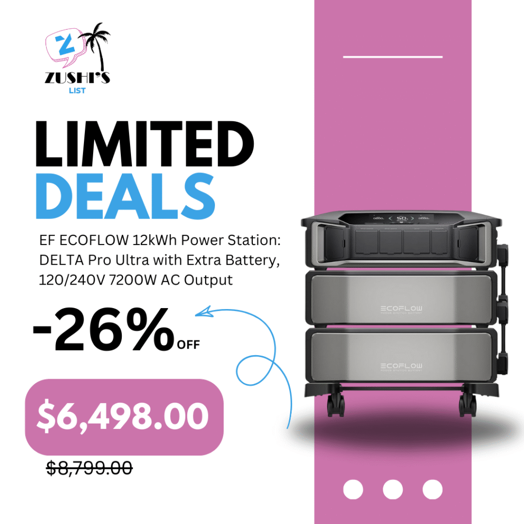 EF ECOFLOW 12kWh Power Station: DELTA Pro Ultra with Extra Battery, 120/240V 7200W AC Output, Lifepo4 Home Battery Backup Expandable to 90kWh, Solar Generator for Home Use, Emergency, Camping, RV