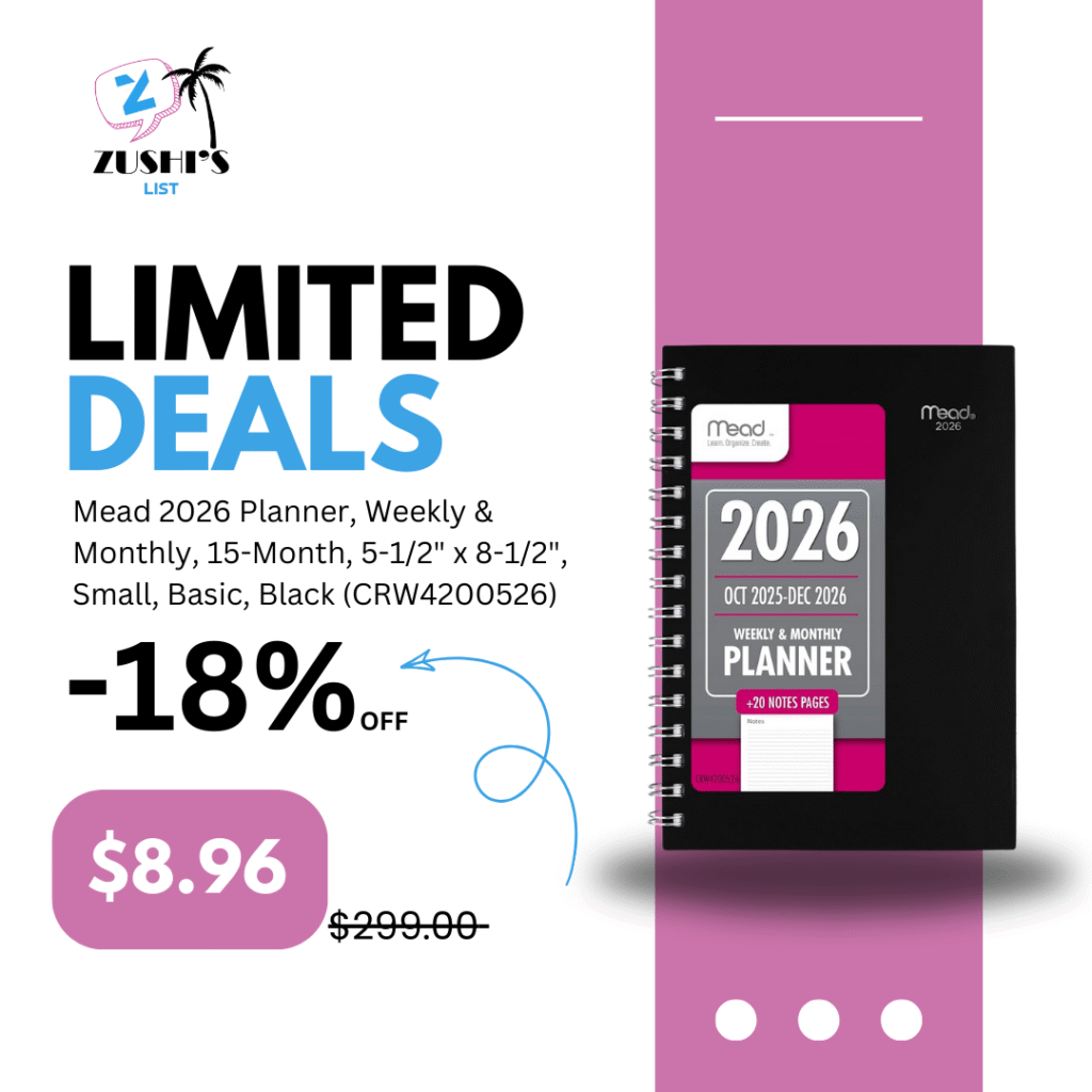 Mead 2026 Planner, Weekly & Monthly, 15-Month, 5-1/2″ x 8-1/2″, Small, Basic, Black (CRW4200526)