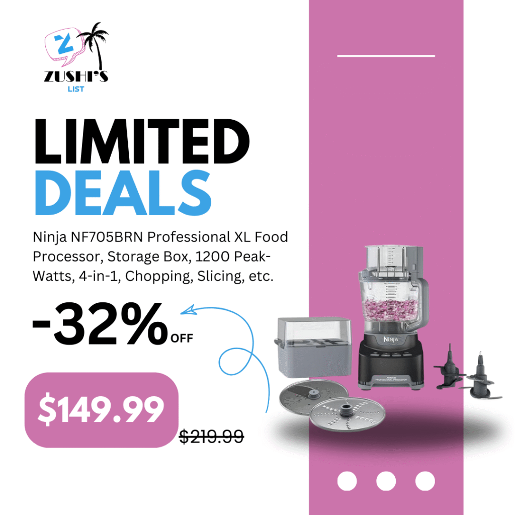 Ninja NF705BRN Professional XL Food Processor, Storage Box, 1200 Peak-Watts, 4-in-1, Chopping, Slicing/Shredding, Purees, Dough, 12-Cup Processor Bowl, 2 Blades & 2 Discs, Feed Chute/Pusher, Black