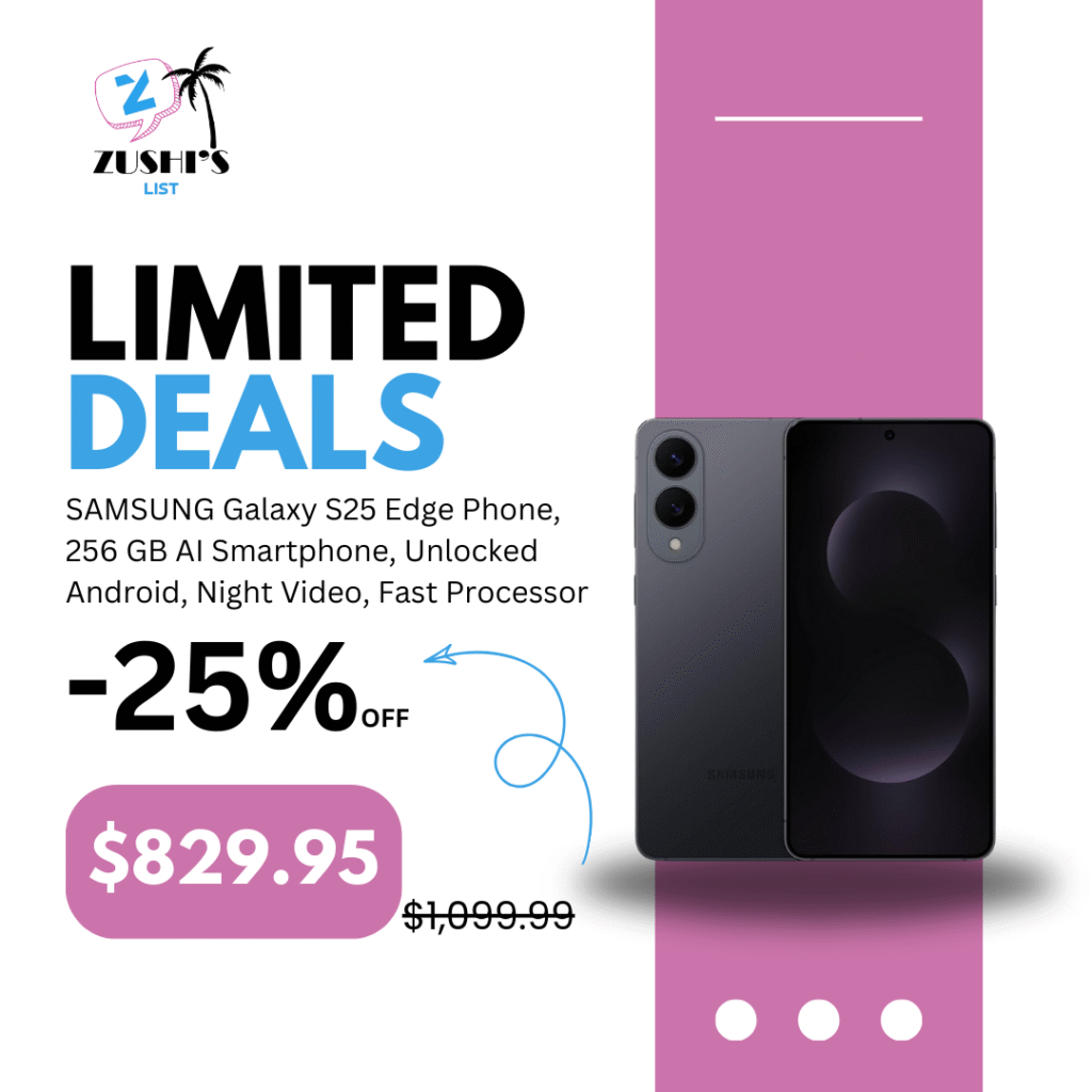 SAMSUNG Galaxy S25 Edge Phone, 256 GB AI Smartphone, Unlocked Android, Night Video, Fast Processor, ProScaler Display, All-Day Battery, 2025, US 1 Yr Manufacturer Warranty, Titanium JetBlack