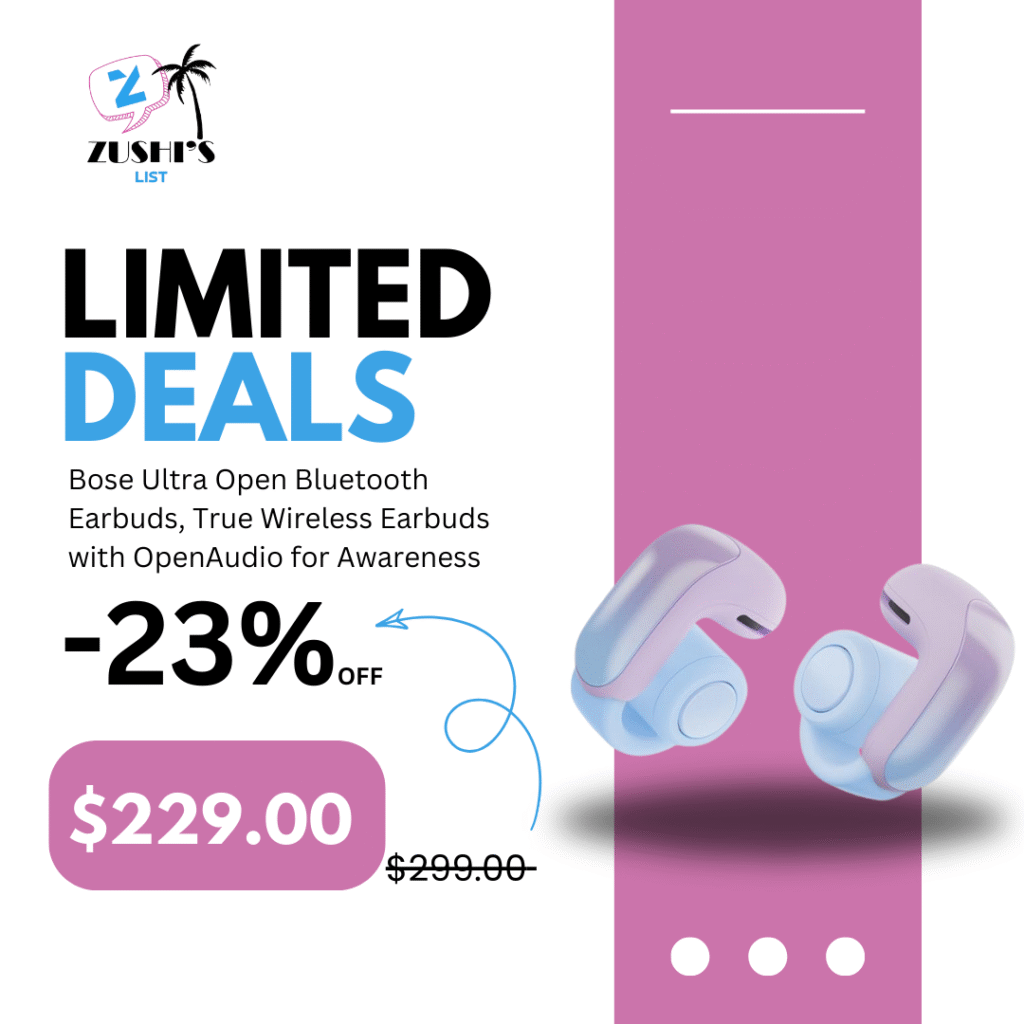 Bose Ultra Open Bluetooth Earbuds, True Wireless Earbuds with OpenAudio for Awareness, Clip On Design for Comfort, Immersive Audio, Up to 48 Hrs of Playtime, Chilled Lilac – Limited Edition Color