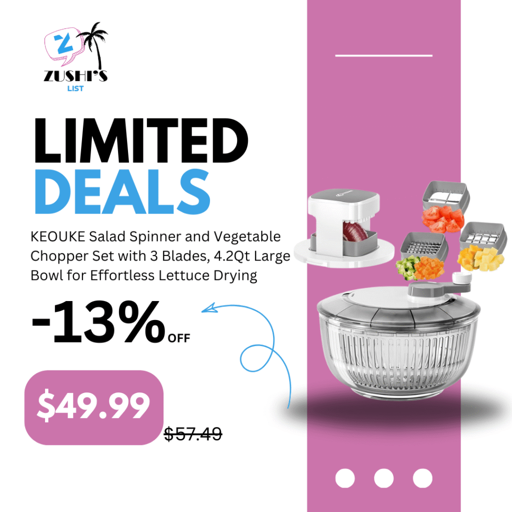 KEOUKE Salad Spinner and Vegetable Chopper Set with 3 Blades, 4.2Qt Large Bowl for Effortless Lettuce Drying, Onion Dicing, and Potato Cutting