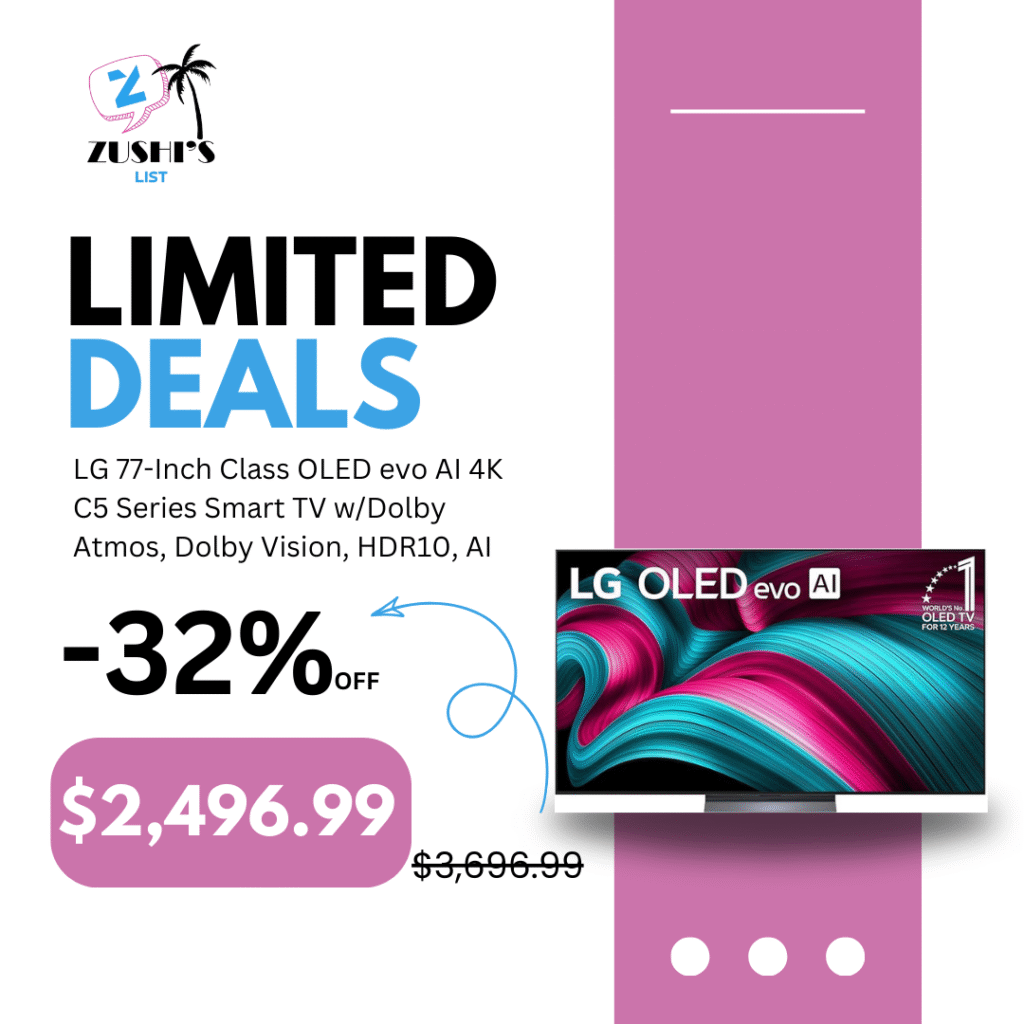 LG 77-Inch Class OLED evo AI 4K C5 Series Smart TV w/Dolby Atmos, Dolby Vision, HDR10, AI Super Upscaling 4K, Filmmaker Mode, Wow Orchestra, Alexa Built-in (OLED77C5PUA, 2025)