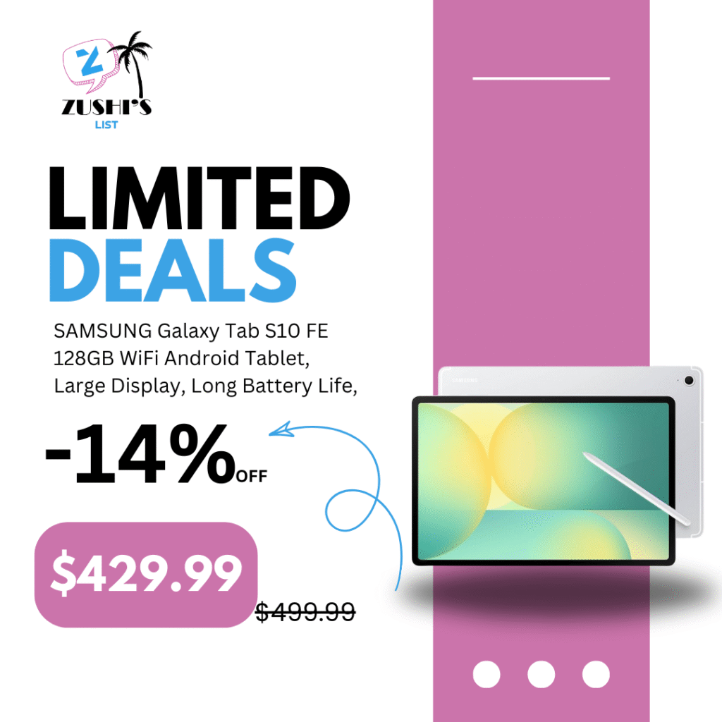 SAMSUNG Galaxy Tab S10 FE 128GB WiFi Android Tablet, Large Display, Long Battery Life, Exynos 1580 Processor, IP68 Water-Resistant, 90 Hz Refresh, S Pen for Note-Taking, US Version, Silver