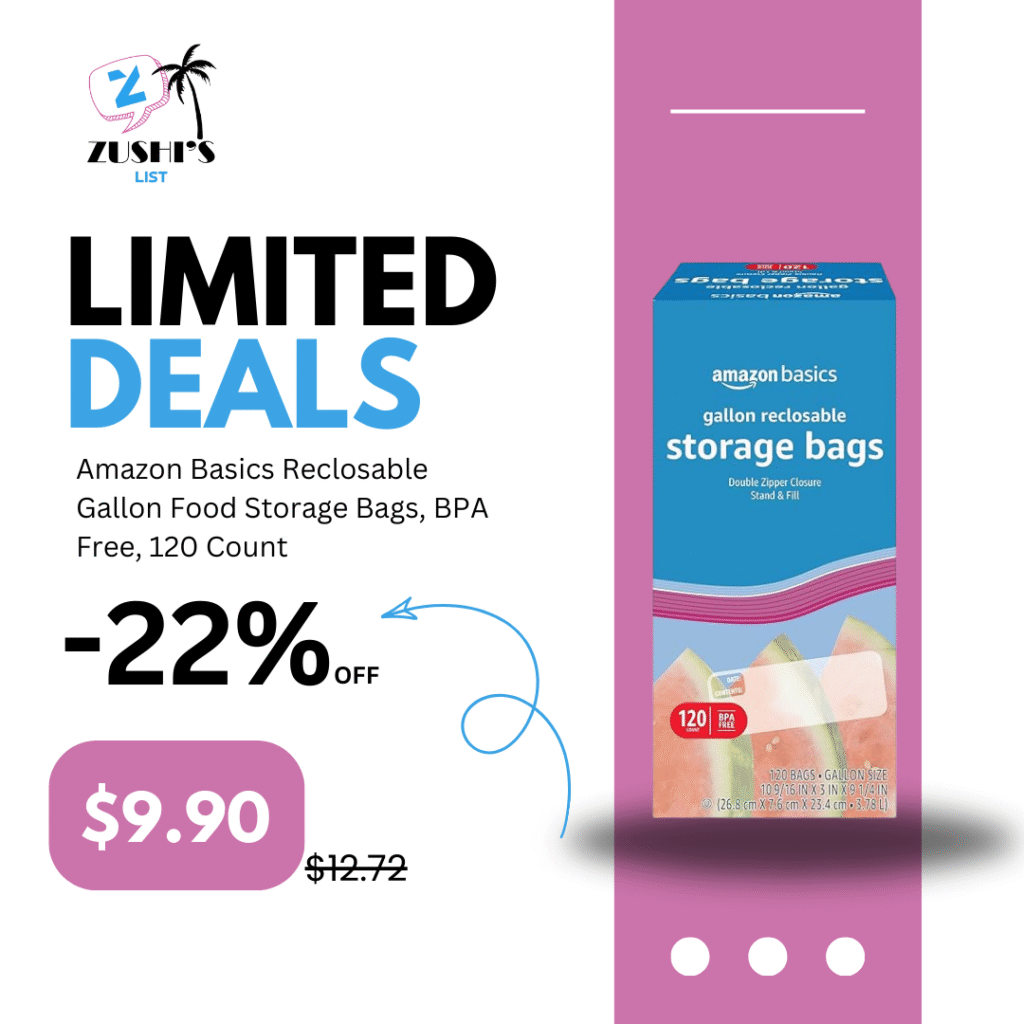 Amazon Basics Reclosable Gallon Food Storage Bags, BPA Free, 120 Count