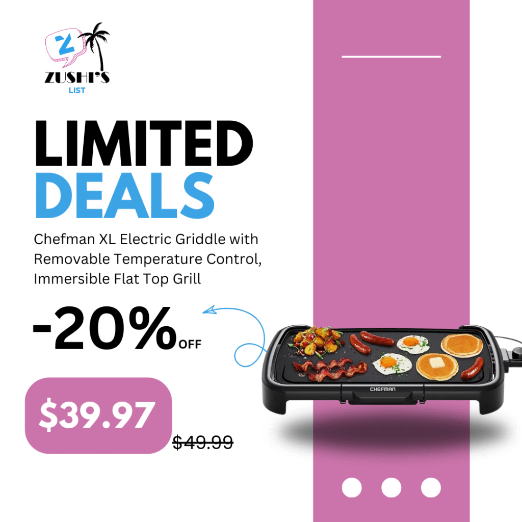 Chefman XL Electric Griddle with Removable Temperature Control, Immersible Flat Top Grill, Burger, Eggs, Pancake Griddle, Nonstick Extra Large Cooking Surface, Slide Out Drip Tray, 10 x 20 Inch