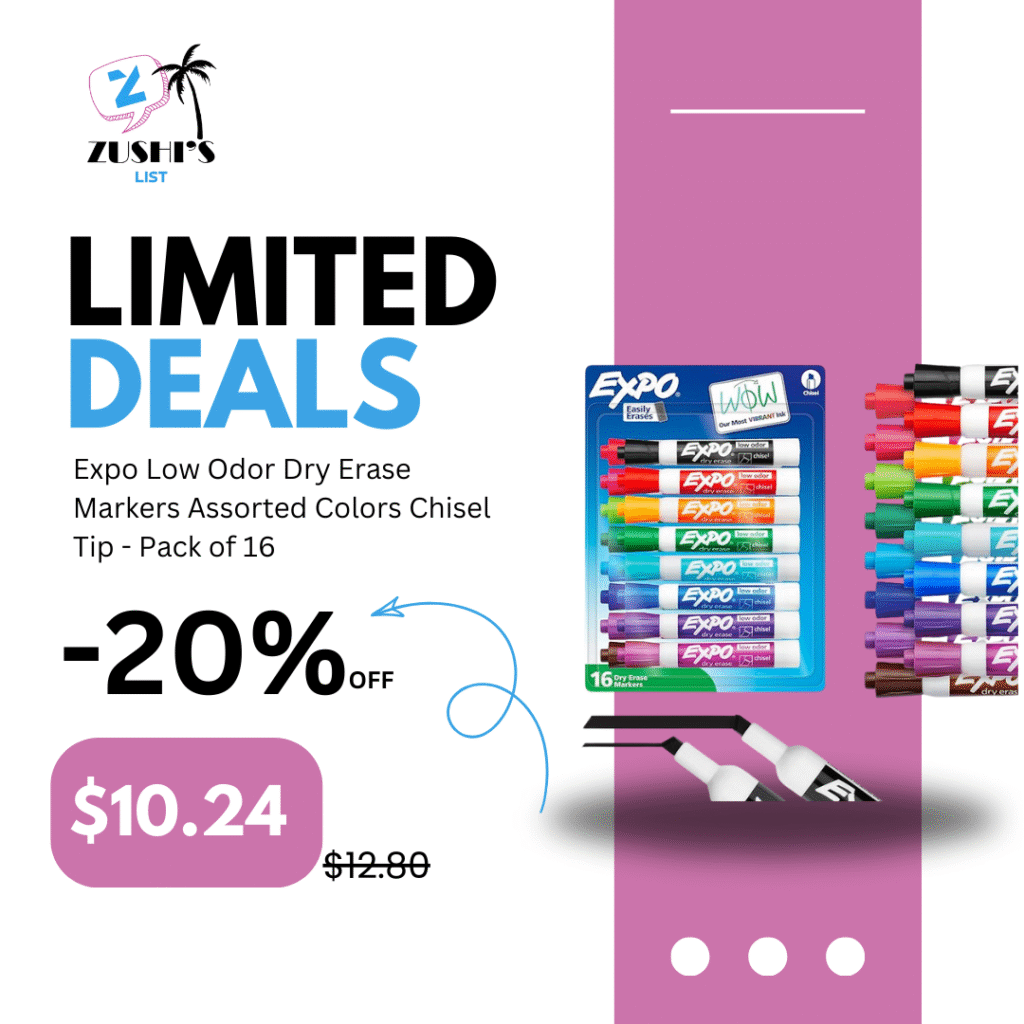 Expo Low Odor Dry Erase Markers Assorted Colors Chisel Tip – Pack of 16