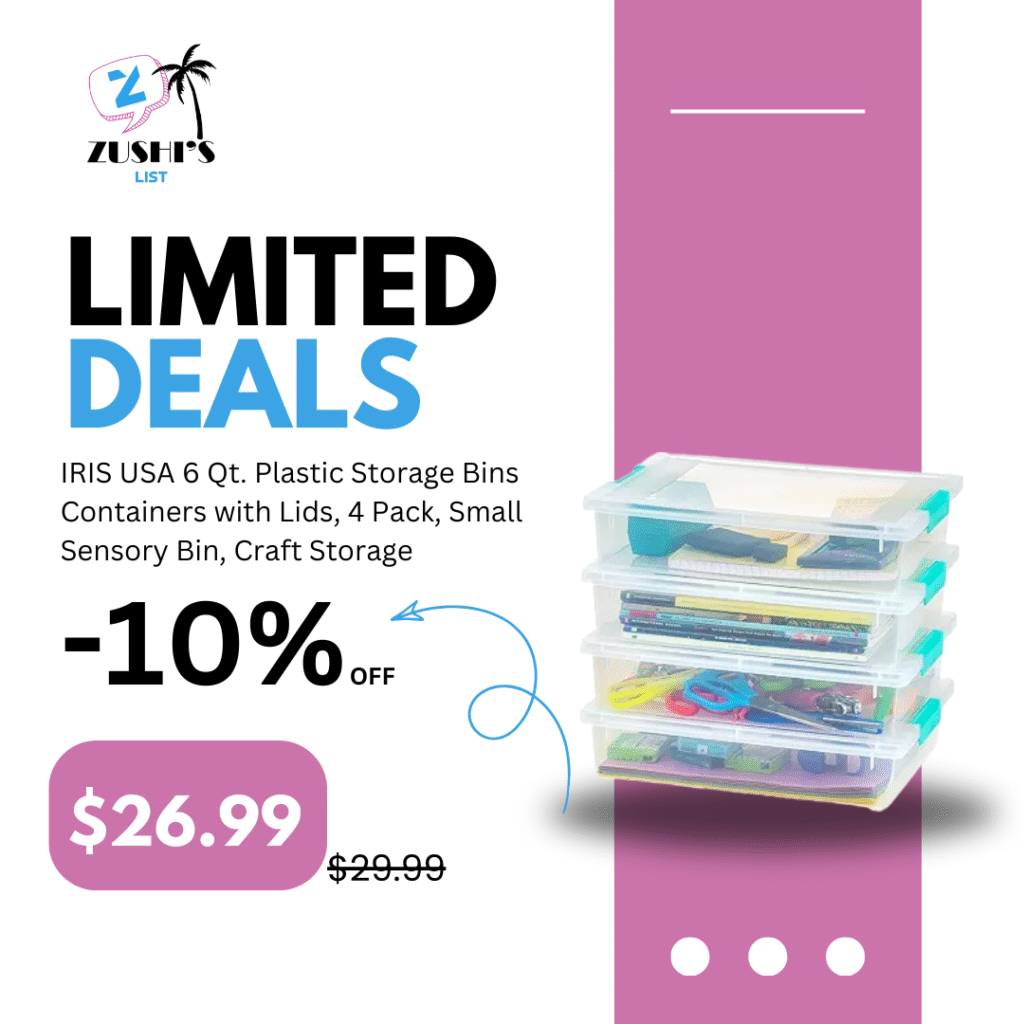 IRIS USA 6 Qt. Plastic Storage Bins Containers with Lids, 4 Pack, Small Sensory Bin, Craft Storage, Craft Organizers & Storage, Organizing Container for Home, Office & Art Supplies, Stackable, Clear