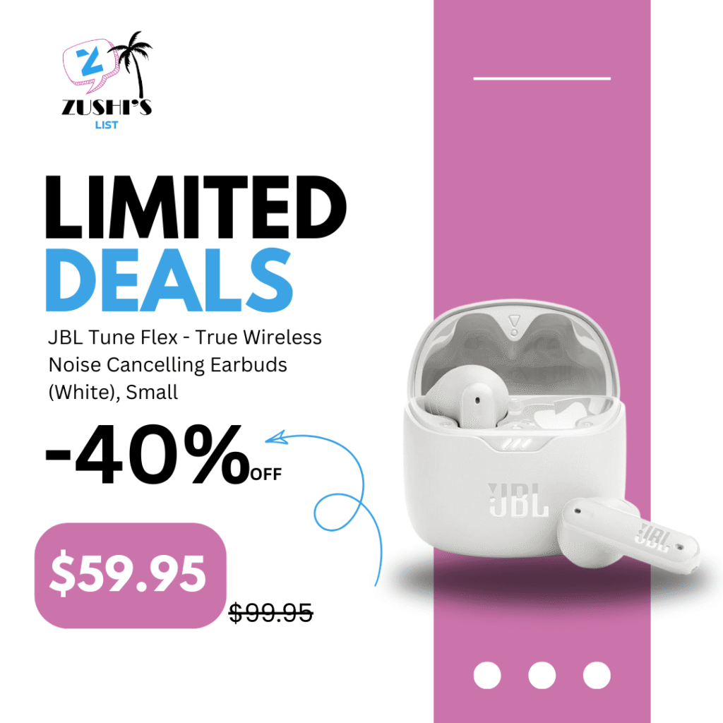 JBL Tune Flex – True Wireless Noise Cancelling Earbuds (White), Small