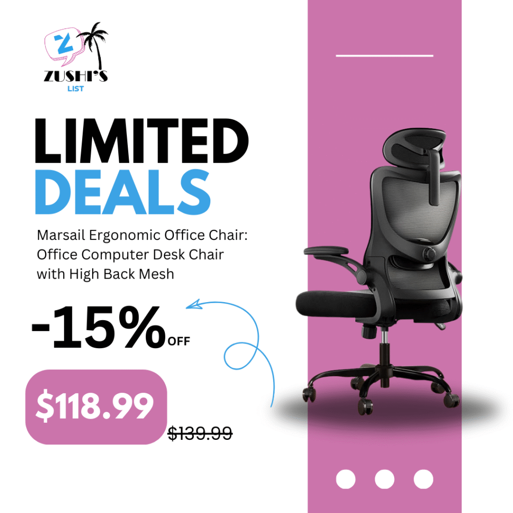 Marsail Ergonomic Office Chair: Office Computer Desk Chair with High Back Mesh and Adjustable Lumbar Support Rolling Work Swivel Task Chairs with Wheel 3D Armrests and Headrest