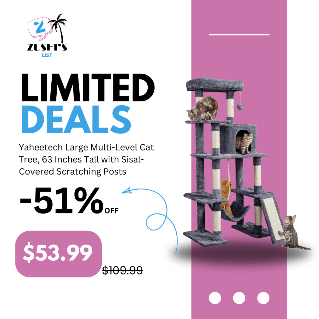 Yaheetech Large Multi-Level Cat Tree, 63 Inches Tall with Sisal-Covered Scratching Posts, Condo, Hammock, Dangling Ball, and Extended Platform for Cats to Play and Sleep